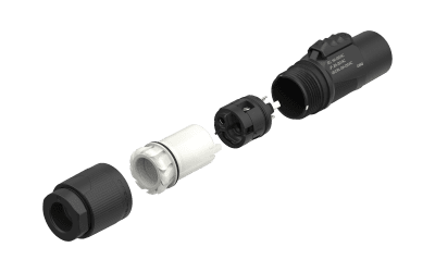 The powerCON TRUE1 is a connector series with breaking capacity (CBC), i.e. it can be connected or disconnected under load or live.