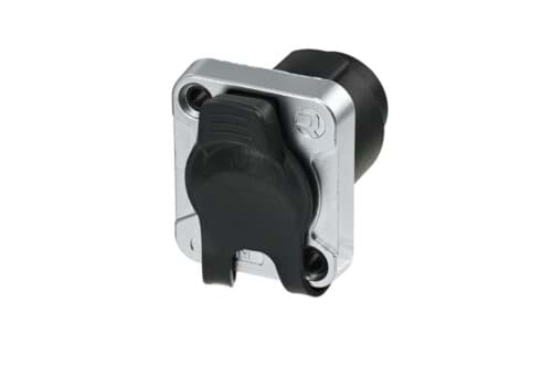 Female RJ45 receptacle with a front-mountable D-Size flange, IP65 rating (Chrome plated housing, RJ45 Feedthrough)