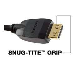 With SCP's Exclusive Snug-Tite™ Grip, your HDMI cable remains securely connected. Other solutions such as screw locks and locking clips are bulky and take up valuable space when connecting cables to multi-port HDMI devices. SCP's Snug-Tite™ grip incorporates the latest patented grip technology that retains its 12 lbs of grip force even after many connects/disconnects. Ideal for mobile applications and permanent installations alike, the SCP Snug-Tite™ Grip keeps your HDMI cable securely connected for maximum signal integrity.
