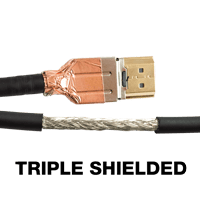 The SCP 990UHD Premium Certified HDMI cables feature Triple Shielded Connectors and Triple Shielded cable. This shielding provides maximum EMI protection that has become a growing problem with the higher frequencies generated by 4K Ultra HD that affect wireless devices in home theaters, rack server rooms, and commercial AV installations. SCP Premium Certified Cables are highly recommended for ALL such installations.