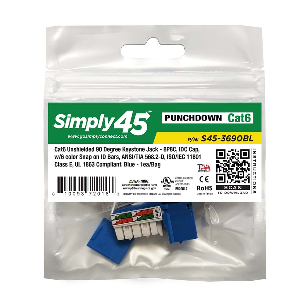 keystone RJ45/110 CAT6 UTP blauw 90gr S45