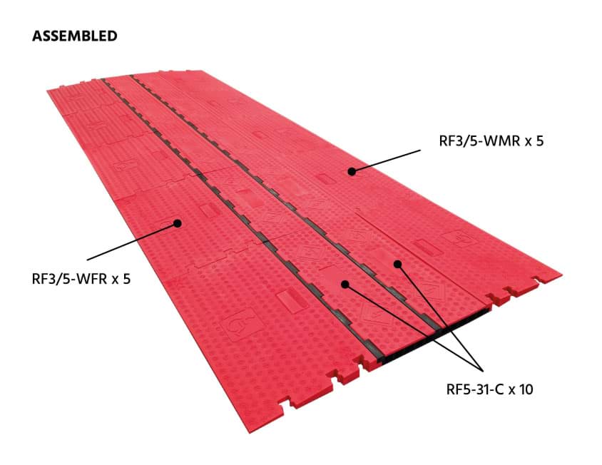 • Connect the 5 channel centre pieces together to provide a flat floor surface protecting as many cables as required.